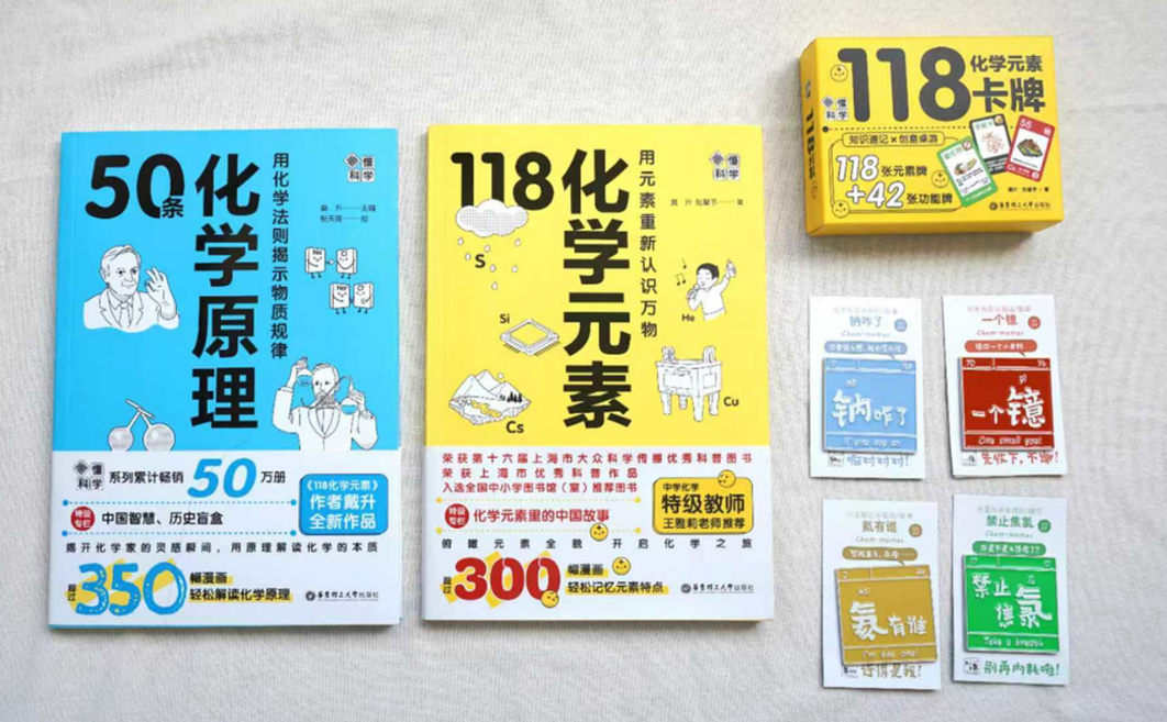 主要科普专著: 《画懂科学・118化学元素》,戴升,张馨予 著,华东理工大学出版社, 2022年. 《画懂科学・50条化学原理》,戴升 主编,华东理工大学出版社, 2025年. 《画懂科学・118化学元素卡牌》,戴升,张馨予 著,华东理工大学出版社, 2025年.