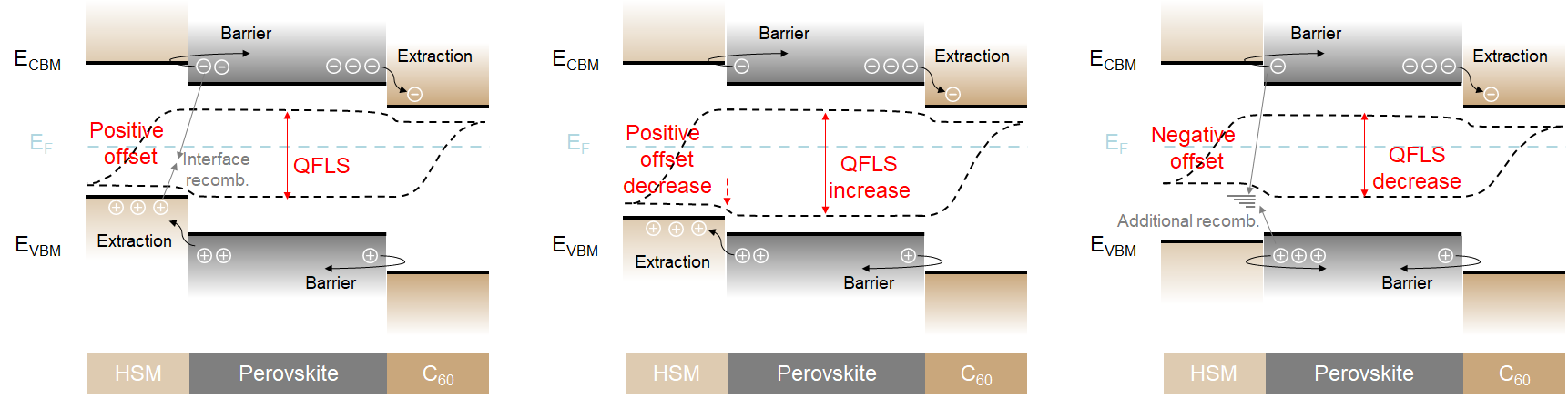 图2. 空穴选择界面能级排布优化抑制界面光生电荷复合